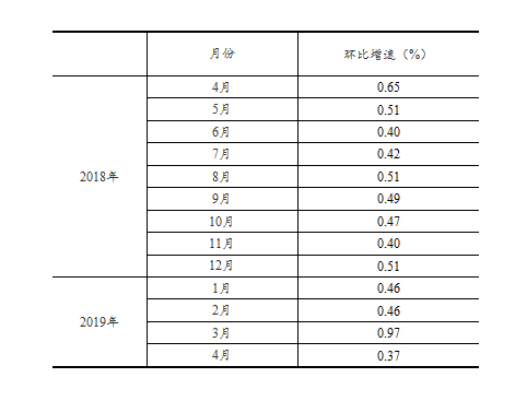 根据季节调整模型自动修正结果,对2018年4月至2019年3月份规模以上工业增加值环比增速进行修订。修订结果及2019年4月份环比数据如下: