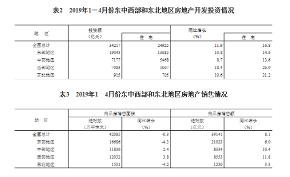 1—4月份,东部地区商品房销售面积16686万平方米,同比下降4.3%,降幅比1—3月份收窄2.5个百分点;销售额21023亿元,增长6.0%,增速提高4.9个百分点。中部地区商品房销售面积11836万平方米,增长2.4%,增速回落0.4个百分点;销售额8334亿元,增长10.4%,增速回落0.5个百分点。西部地区商品房销售面积12032万平方米,增长3.8%,增速回落0.5个百分点;销售额8553亿元,增长11.8%,增速回落0.4个百分点。东北地区商品房销售面积1531万平方米,下降4.2%,1—3月份为增长0.3%;销售额1230亿元,增长3.3%,增速回落3个百分点。