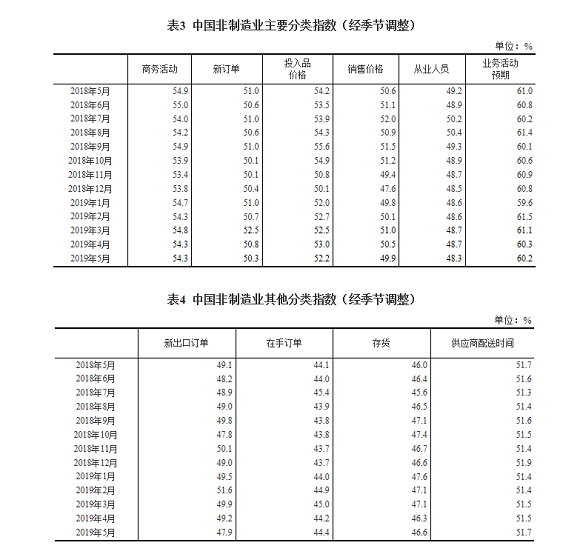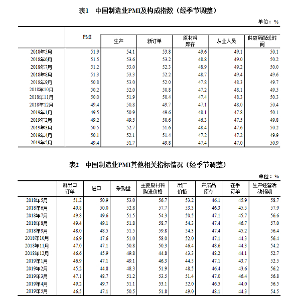 2019年5月份,中国制造业采购经理指数(PMI)为49.4%,比上月回落0.7个百分点。