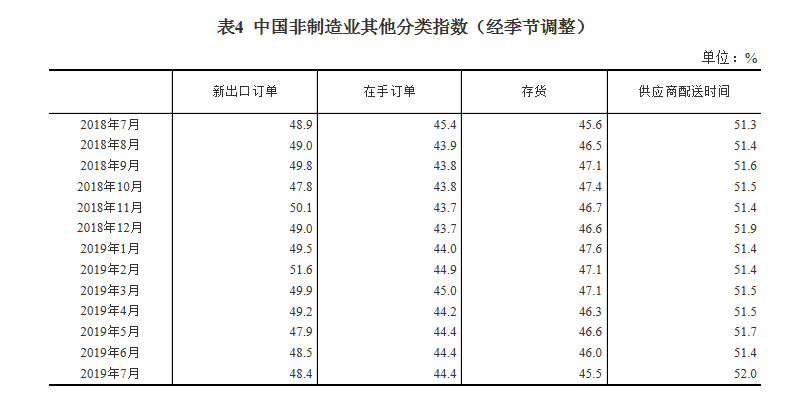 2019年7月中国采购经理指数运行情况