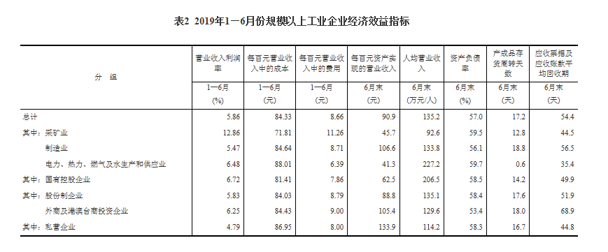 6月末,规模以上工业企业资产总计114.30万亿元,同比增长6.3%;负债合计65.10万亿元,增长5.6%;所有者权益合计49.20万亿元,增长7.2%;资产负债率为57.0%,同比降低0.3个百分点。