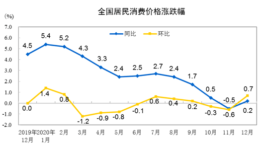 国家统计局今天发布了2020年12月份全国CPI(居民消费价格指数)和PPI(工业生产者出厂价格指数)数据。对此,国家统计局城市司高级统计师董莉娟进行了解读。