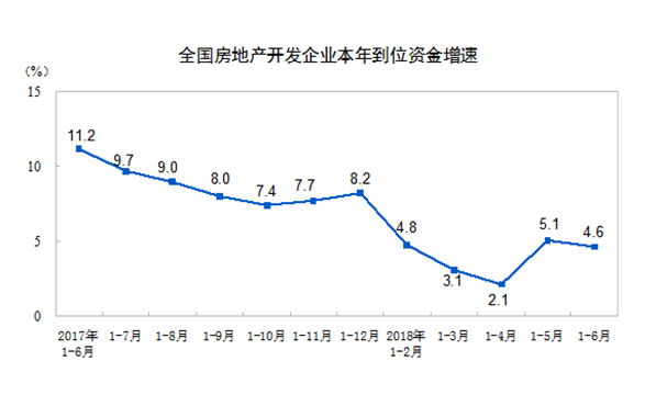 1-6月份,房地产开发企业到位资金79287亿元,同比增长4.6%,增速比1-5月份回落0.5个百分点。其中,国内贷款12292亿元,下降7.9%;利用外资28亿元,下降73.1%;自筹资金25541亿元,增长9.7%;定金及预收款26123亿元,增长12.5%;个人按揭贷款11524亿元,下降4.0%。