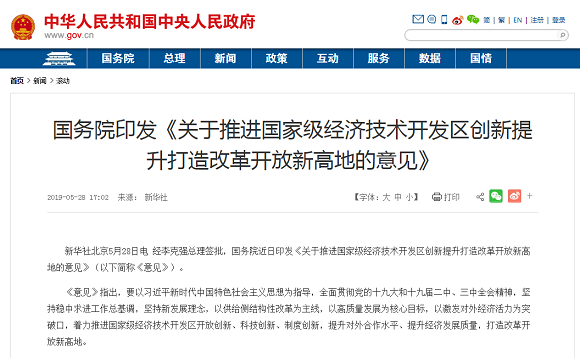 国务院印发《关于推进国家级经济技术开发区创新提升打
