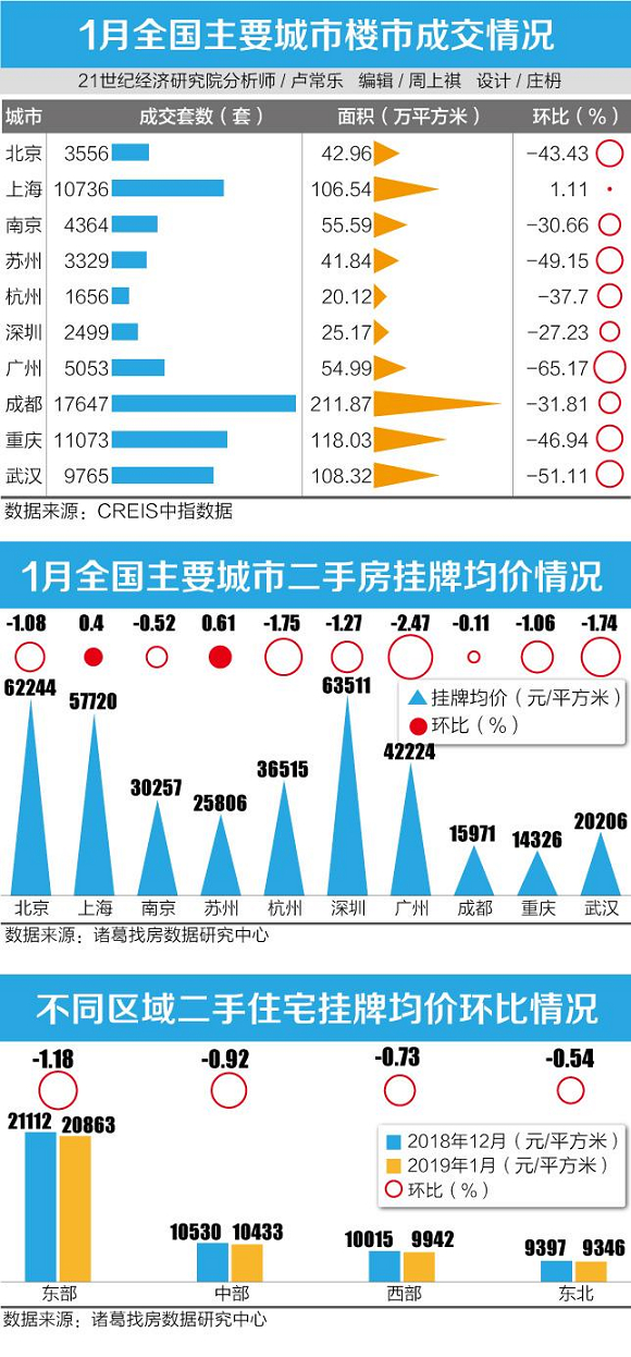 21世纪经济研究院分析师认为,1月份抛开春节假期的因素影响外,当前在中央坚持“房子是用来住的,不是用来炒的”的定位、地方强调“一城一策”的背景下,房地产市场局部微调的态势愈发明显,带动着各地二手房市场成交与挂牌价格的逐渐趋于理性。