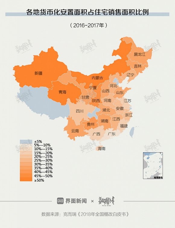 克而瑞《2018年全国棚改白皮书》显示,棚改货币化安置对于中西部及北方部分省份住宅销售的拉动作用较大,尤其对于三四线城市来说,棚改货币化安置是支撑当地楼市的重要因素之一。