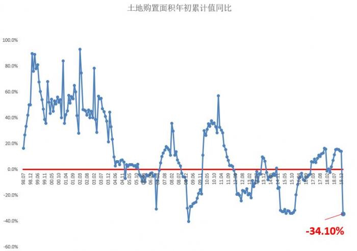 21世纪经济报道注意到,全国2019年前两月房地产开发企业土地购置面积1545万平方米,同比下降34.1%,这是2009年3月以来的最大跌幅,也是1998年7月相关机构有统计以来的第二大跌幅。