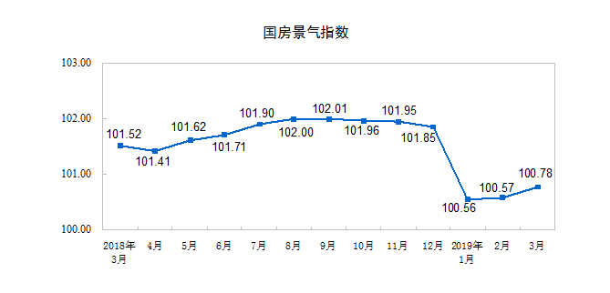 3月份,房地产开发景气指数(简称“国房景气指数”)为100.78,比2月份提高0.21点。