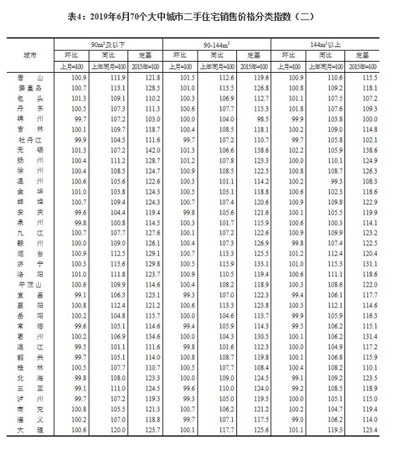 初步测算,6月份,一线城市新建商品住宅和二手住宅销售价格同比分别上涨4.4%和0.2%,涨幅比上月分别回落0.3和0.1个百分点。二线城市新建商品住宅和二手住宅销售价格同比分别上涨11.4%和7.6%,涨幅比上月分别回落0.7和0.5个百分点。三线城市新建商品住宅和二手住宅销售价格同比分别上涨10.9%和7.9%,涨幅比上月分别回落0.4和0.3个百分点。