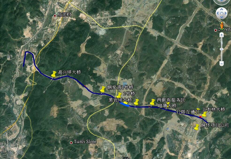铜仁至怀化高速公路(铜仁段)起点接杭瑞高速公路(大兴至思南段)照壁岩处,主要途径暗塘、中木林、铜鼓滩、恶滩、黄家寨、中罗水田等地,止于铜仁市与怀化市交界处罗水田,接铜仁至怀化高速公路(怀化段),项目线路全长33.203公里,估算总投资为40.22亿元,该项目于2015年底开工。