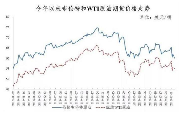 美国总统特朗普8月1日通过社交媒体表示,将从今年9月1日起对从中国进口的价值3000亿美元商品加征10%关税。受其影响,当日国际市场原油期货价格暴跌,纽约WTI原油期货收盘价为每桶53.95美元,比前一交易日下跌7.90%,为2015年2月以来最大单日跌幅;伦敦布伦特原油期货收盘价为每桶60.50美元,比前一交易日下跌6.99%,为2016年2月以来最大单日跌幅。此外,美国能源信息署(EIA)最新数据显示,上周美国原油日产量1220万桶,环比增长90万桶,再次逼近历史高点。美元指数刷新两年高点,对以美元计价的原油价格也造成压力。