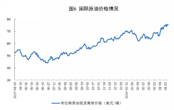 受地缘政治因素影响,原油价格持续走高,布伦特原油现货离岸价格创下2015年以来最高水平。截至4月30日,价格为75.92美元/桶,比3月底上涨6.90美元/桶。在此拉动下,国内成品油零售价格也相应大幅上调。