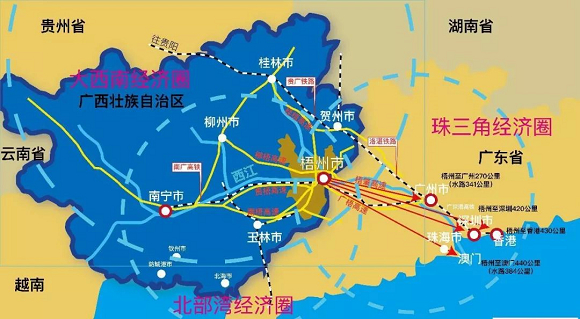 梧州不仅是广西的东大门,还是广西乃至西部地区毗邻港澳地区最近的城市,是连接珠三角与北部湾的主要通道。交通四通八达,因此货物流通量不断增长,天然适合物流业产业集群的发展。
