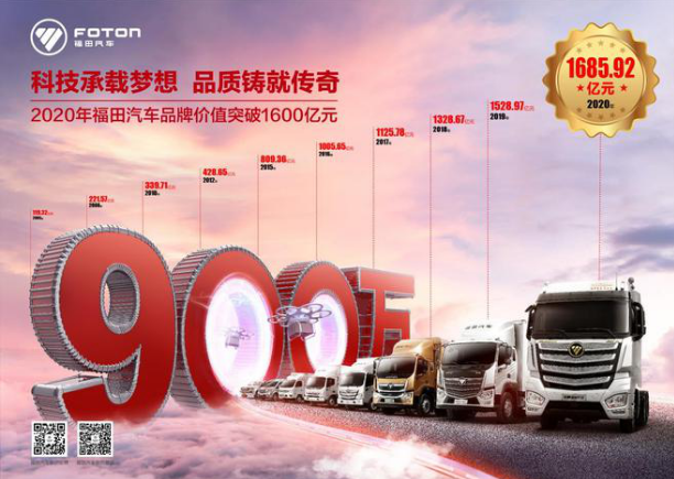 凭借过硬的产品品质、前瞻化的市场布局及优质的服务,福田汽车坚定地走出了中国自主品牌不断向上之路,持续赢得了用户的高度认可。同时,品牌力量的不断凸显,也使得品牌价值持续向上,品牌价值以1685.92亿排行第34位,连续16年位居商用车行业第一、汽车行业第四。