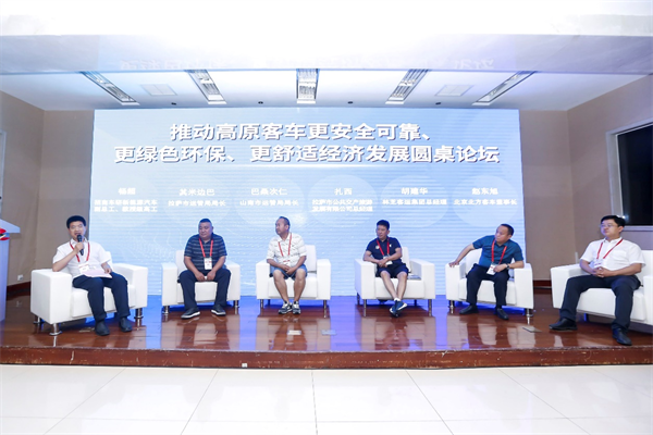 在圆桌论坛环节,招商局检测研究院新能源汽车专业副总工杨超,以及拉萨市运管局局长其米边巴、山南市运管局局长巴桑次仁、拉萨市公共交产旅游发展有限公司总经理扎西、林芝客运公司总经理胡建华、北京北方客车董事长赵东旭以“推动高原客车更安全可靠、更绿色环保、更舒适经济发展”为主题展开了积极讨论。行业管理部门、车辆运营企业、客车制造及零部件企业、媒体及科研单位代表等还共同发起并宣读了“西藏高原新型客车安全绿色发展倡议书”。
