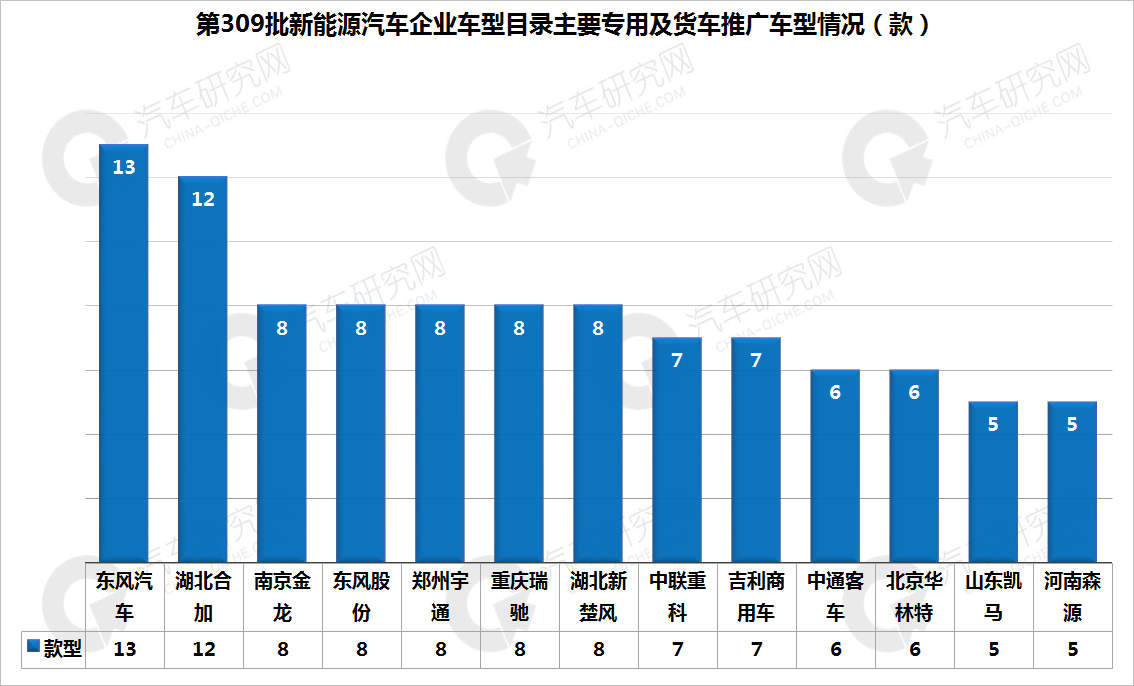 3、第309批新能源汽车企业车型目录专用及货车推广车型分析