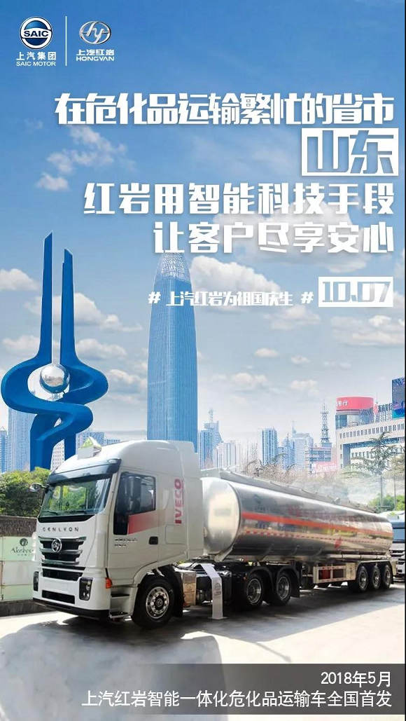 上汽红岩审时度势,响应国家全新法规要求,于2018年5月17日,在中国物流与采购联合会联合主办的第二届中国化工物流安全环保发展论坛上,发布全新智能车罐一体化危化车专业定制,属全国首发。