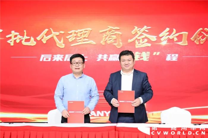 会议短暂休息后,随后进行了首批代理商签约和授牌仪式。由张晓帅与首批代理商董事长一对一进行签约。这意味着三一重卡与19家代理商正式成为最紧密的合作伙伴,三一重卡线下模式发展迈出坚实的一步。