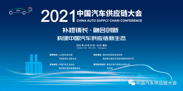 2021中国汽车供应链大会由工业和信息化部、中国机械工业联合会指导,中国汽车工业协会、重庆两江新区管理委员会主办,重庆市招商投资促进局、重庆两江新区开发投资集团有限公司协办,并得到合作伙伴重庆长安汽车股份有限公司和地平线的大力支持。届时,政、产、学、研、用等领域的重要人士将聚集一堂,数百家汽车供应链领域的主流企业将与会,近百家国内外主流媒体将进行现场和线上全程报道。