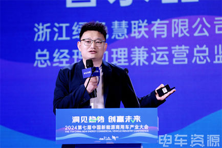 浙江绿色慧联有限公司总经理助理兼运营总监曹永磊发表了《科技平权推动城配行业升级》的主题演讲。他表示,新能源物流车在未来不只是一个车的概念,更是推动物流行业规模化和数智化的载体,只有科技的推动才能解决物流行业的发展痛点。