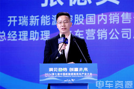 开瑞新能源控股国内销售公司总经理助理、卡车营销公司总经理张德贵发表了《新能源商用车市场的发展趋势及转型思考》的主题演讲。他认为,2023年是面系的爆发年,2024年将是微卡、轻卡的爆发年,渗透率将翻一倍,市场的竞争也将从模式阶段向车型阶段转变,最终走向品牌竞争。