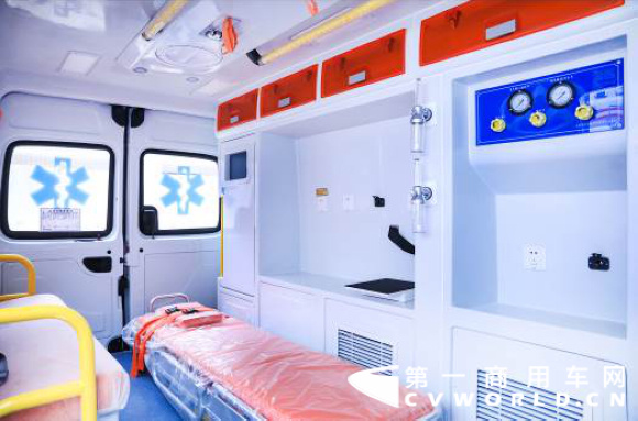 该款上汽大通V80救护车不仅集大功率、低油耗、低排放等优势于一身,而且配合智能式后空气悬架系统,确保了动力的高效性和车身的稳定性,让急救工作能够快速、安全进行。与一般救护车不同的是,上汽大通V80救护车是上汽大通结合国内医疗特点,基于医疗急救工作需求专门定制而成的一款最新型救护车。根据医疗服务种类的不同,上汽大通将V80打造为无障碍车、转运型救护车和监护型救护车,力争以更人性化的车辆配置,确保医疗工作效率,呵护患者生命。