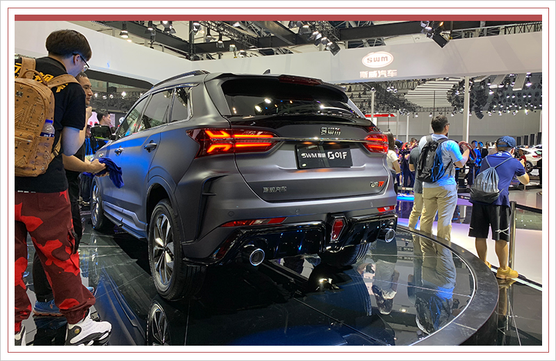 SWM斯威G01 F版侧面肌肉感十足,黑色悬浮式车顶周围带有镀铬饰条点缀,同时换装了全新运动铝合金轮圈;尾部造型上,新车采用了现款车型箭尾LED后尾灯,并加入大量空气动力学运动套件及双边共两出抛光运动排气尾喉,大幅提升整体运动风格。