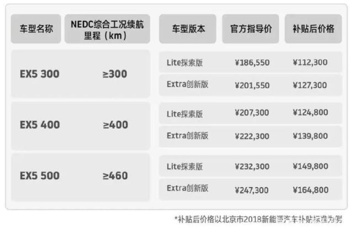 2018年9月28日,威马汽车旗下首款纯电动SUV车型——EX5量产版已进入正式交付阶段,威马官方表示今年其将交付1万辆,2019年的交付目标是10万辆。新车推出3种续航版本共6款车型,按照2018年补贴标准,补贴后价格区间为11.23万-16.48万元(北京地区)。