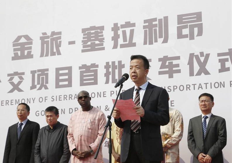 Kaitibie)、厦门市人民政府副秘书长陈通汕、中信保厦门分公司总经理郑忠平,以及福建省汽车工业集团有限公司董事长黄莼、福汽集团总经理、金龙汽车集团董事长邱志向、福汽集团副总经理、金龙汽车集团副董事长谢思瑜、厦门金龙旅行车有限公司总经理彭东庆等重量级嘉宾的见证下,金旅客车与塞拉利昂200辆客车的订单完成首批交付,标志着中国客车企业在“一带一路”建设中再立新功。