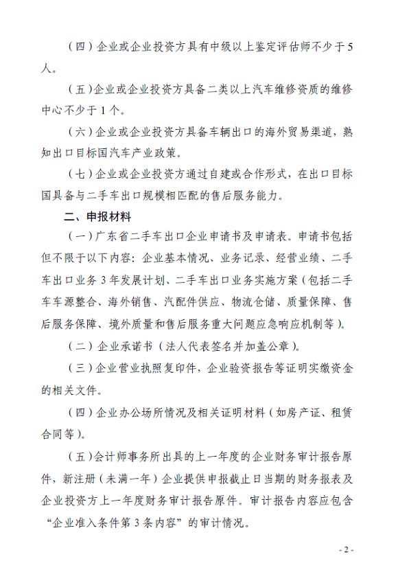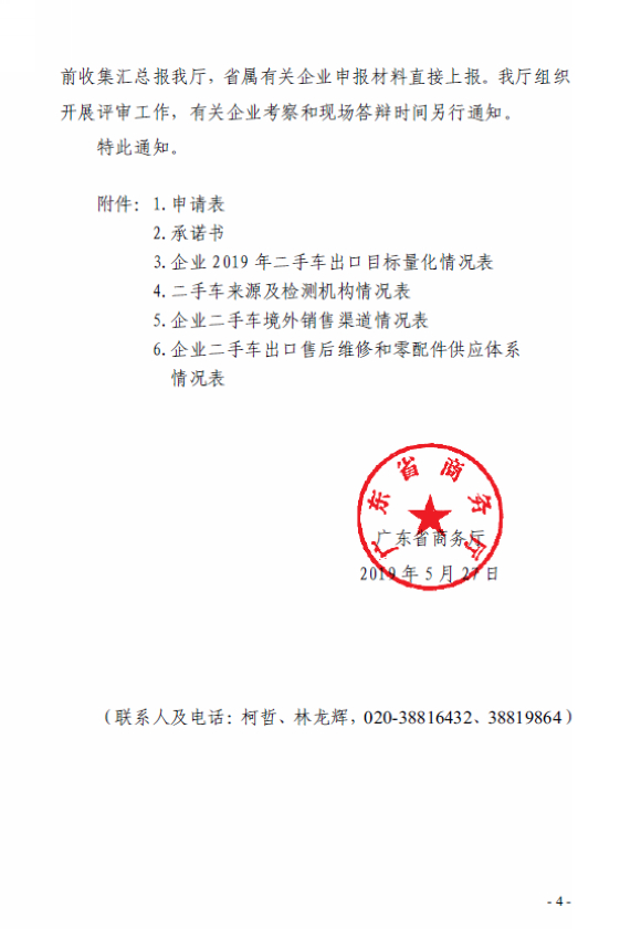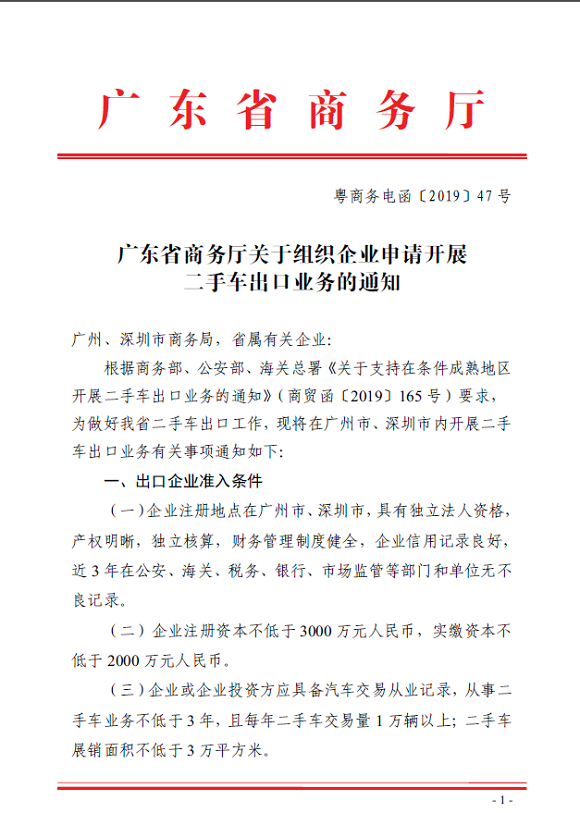 广东省商务厅:组织企业申请二手车出口业务