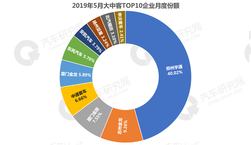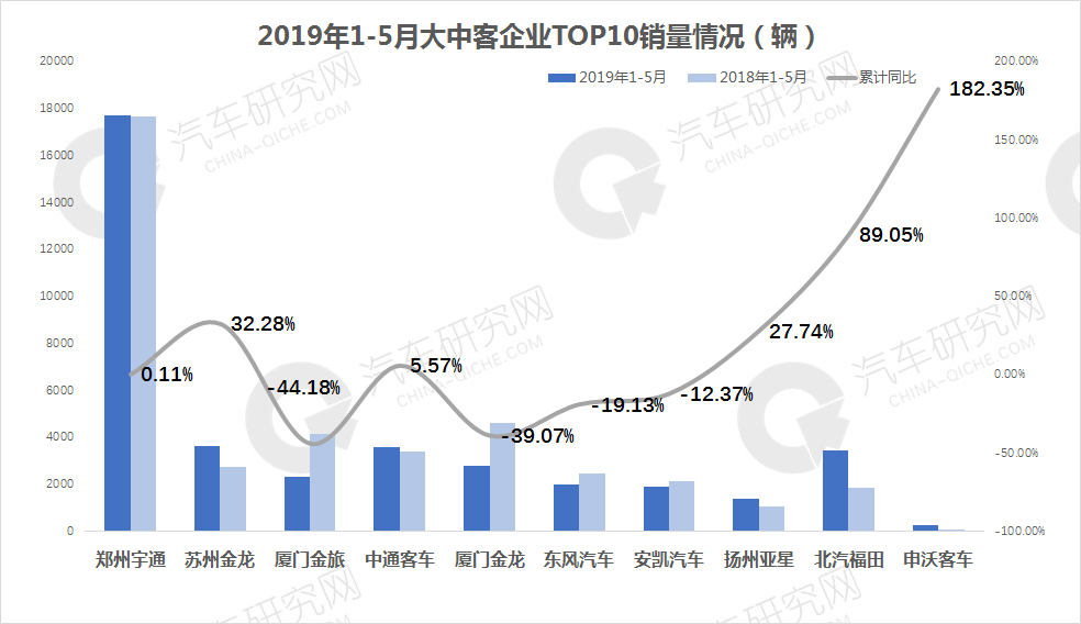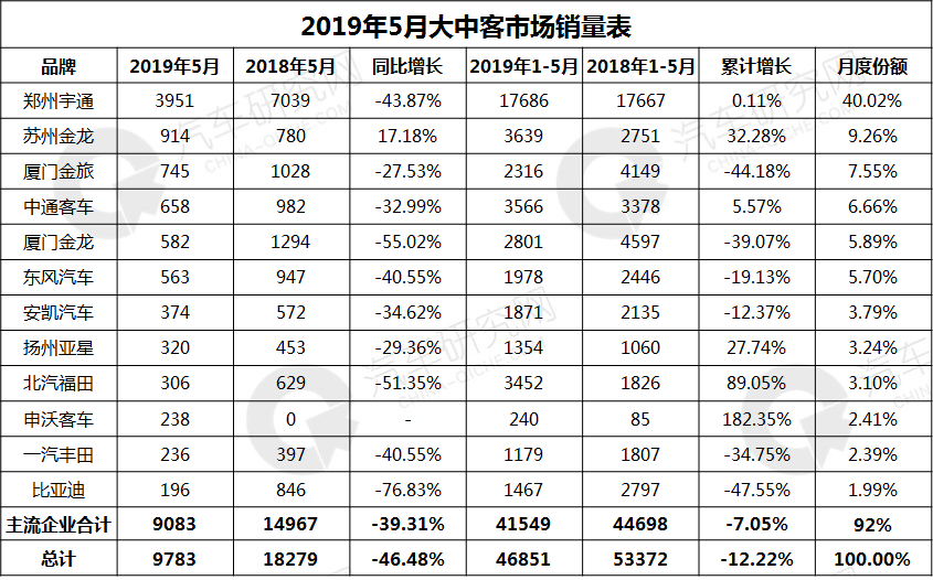 2019年5月大中客销量:宇通陷增长困境 苏州金龙蝉联亚