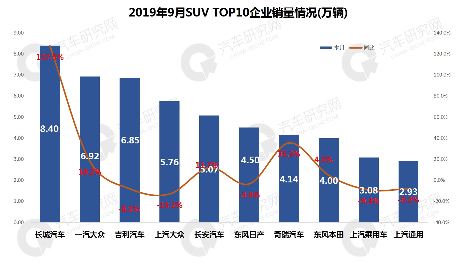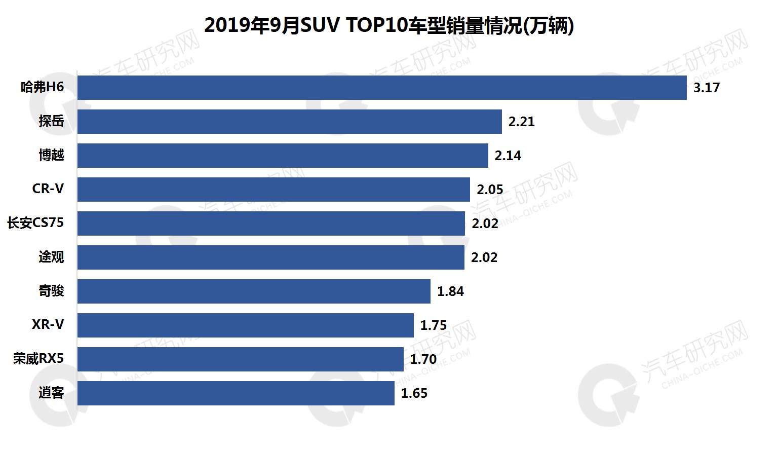 2019年9月SUV销量:长城增幅超100% 自主品牌SUV销量遥遥领先