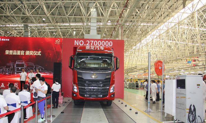 活动现场,随着5,4,3,2,1倒计时呼声,在现场来宾的热情期盼中,东风柳汽第270万辆车——乘龙H7缓缓驶出总装下线口。标志着第270万辆车成功下线。