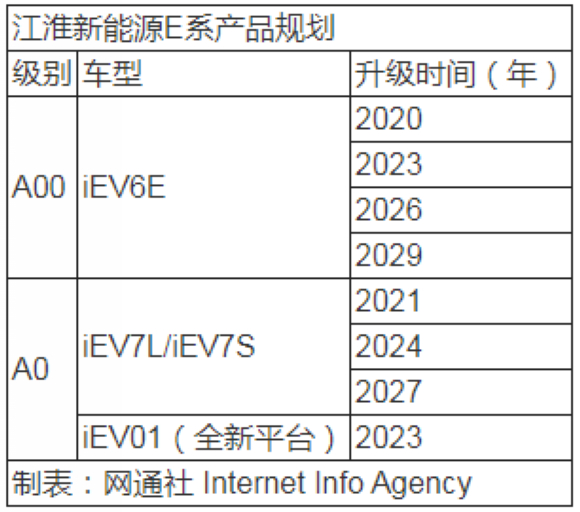 2023年推新平台 曝江淮新能源E系列未来10年规划