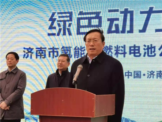 “为建设‘绿色动力氢能城市’,山东重工承接了国家重大研发项目。随着本次济南线路的开通,山东省已经初步形成了氢能源公交生态。”山东重工集团党委书记、董事长谭旭光在仪式上表示。