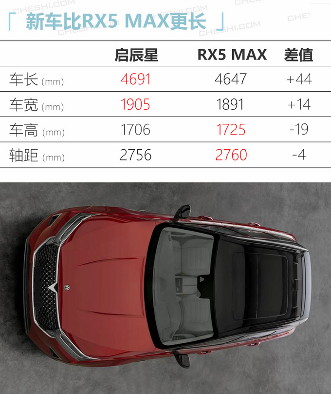 外观上的变化不必多说,启辰星与东风启辰在售车型采用了完全不同的设计,辨识度更高。新车拥有2756mm的轴距和1905mm同级最大的车宽,进一步扩大了车内的驾乘和储物空间,整体尺寸超过RX5