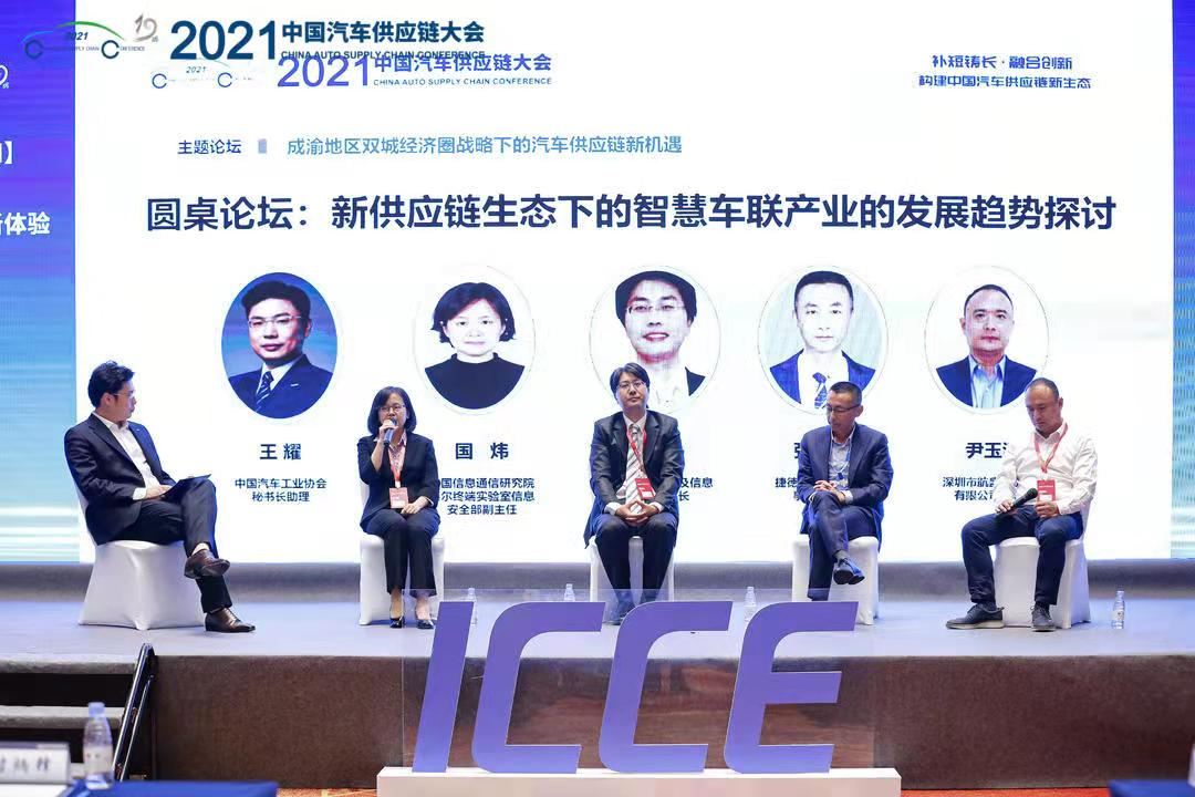 2021年10月15日-16日,由中国汽车工业协会、重庆两江新区管理委员会联合主办的“2021中国汽车供应链大会”在重庆举办,长安汽车、地平线作为官方合作伙伴全力支持本次大会。本届供应链大会主题为“补短铸长、融合创新——构建中国汽车供应链新生态”,共同探讨产业政策,交流分享技术,研判产业趋势,展示创新成果,旨在促进产业国内国际互动,凝聚产业链条上下齐心,共谋产业协同发展之路。其中,在10月15日下午举办的ICCE联盟“跨界创新,打造智慧车联新体验”主题论坛上,设置了圆桌对话环节。本场对话由中国汽车工业协会秘书长助理王耀主持,中国信通院泰尔实验室信息安全部副主任国炜、上汽集团数据及信息系统部部长顾敏、捷德中国TCD事业部总监张晓东和深圳航盛电子股份有限公司副总裁尹玉涛参与现场对话。以下内容为对话实录: