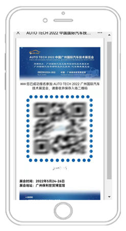 注:注册成功后,请将您的二维码回执(见下面样例),截图保存,现场可凭借二维码回执或参观登记凭证,即可入场参观。