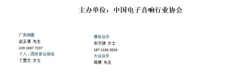 主办单位:中国电子音响行业协会