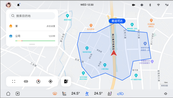 OTA升级针对用户电量焦虑亦提供了优化方案。升级完成后,“荷包蛋“地图将根据当前电量绘制可达范围,无电量限制,用户对剩余续航可随时做到心中有数。而当车辆电量不足以抵达目的地时,系统将自动发起沿途充电站智能规划,为用户保驾护航。