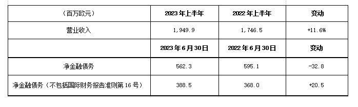 在报告期内,合并净收入达19.499亿欧元,较2022年上半年增长11.6%(按同比汇率计算,增长12.3%)。