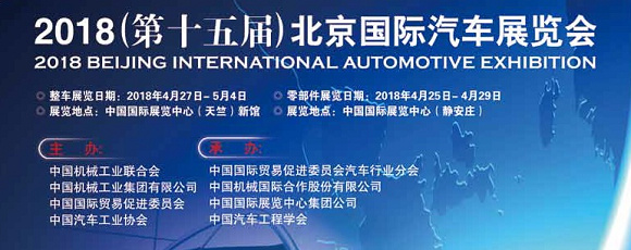 2018北京车展由中国机械工业联合会、中国机械工业集团有限公司、中国国际贸易促进委员会、中国汽车工业协会主办;中国国际贸易促进委员会汽车行业分会、中国机械国际合作有限公司、中国国际展览中心集团公司、中国汽车工程学会联合承办。