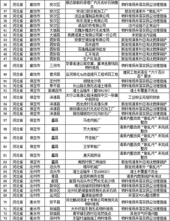 督查组检查发现,清单外涉气“散乱污”企业2家。其中,河北省廊坊市安次区1家,沧州泊头市1家。