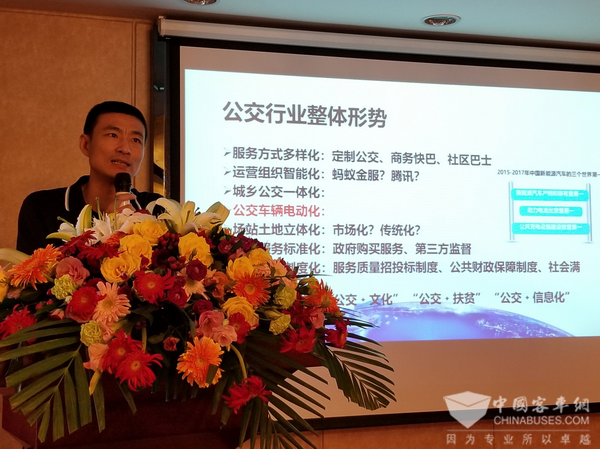 首站活动即是针对公交运营转型升级的研讨会。据交通运输部科学研究院高级工程师熊燕舞介绍,2017年底,我国新能源公交车推广应用总量突破25万辆。未来,我国将进一步加强对新能源汽车的推广使用,到2020年,新能源公交车要达到30万辆。他分析道:“我国公交行业呈现服务方式多样化、城乡公交一体化、公交车辆电动化等特点。需要强调的是,公交电动化已成为不可逆转的趋势,并且经过近几年的实践,电动公交车产业已经日渐成熟。”