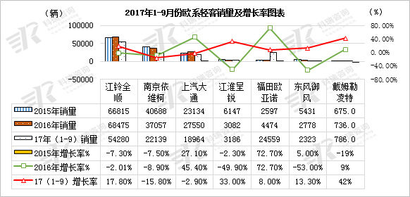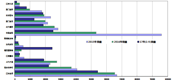 2015年-2017年(1-9)欧/日系轻客销量排序图
