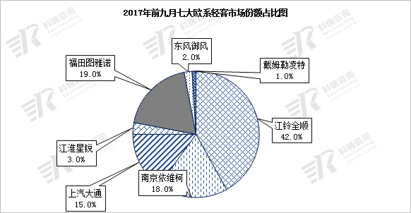2017年1-9月份欧系轻客(含准欧系)市场份额占比图