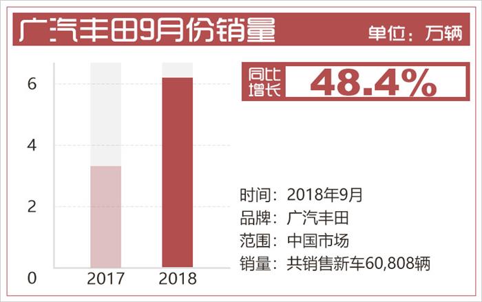 广汽丰田旗下全新凯美瑞、中期改款后的汉兰达、刚上市的全新C-HR、还有雷凌双擎等车型。近日,网通社从广汽丰田官方获得消息,广汽丰田在9月销量达60,808台,相比去年同期增长48.4%;前三季度累计销量421,854台,相比去年同期增长24.4%。