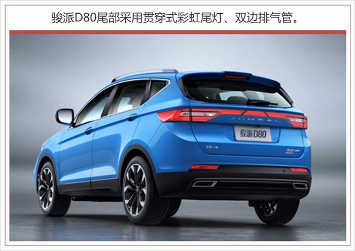 安全配置方面,骏派D80全系配有ABS+EBD、ESP电子稳定控制系统、TCS电子牵引力控制系统、EPB电子手刹+AUTO
