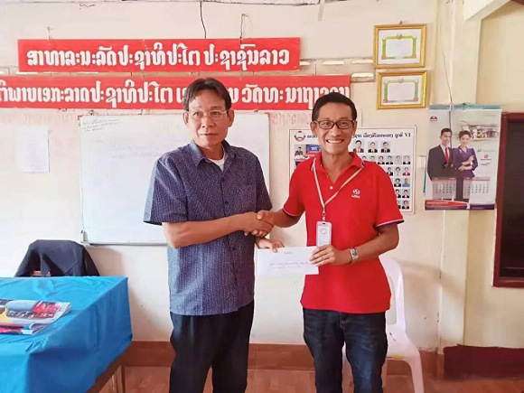 经了解,南农德村入村道路还是土路,雨天泥泞不堪,严重影响村民的生产生活,同时村里唯一的幼儿园设施简陋陈旧,急需修缮。路和教育关系着南农德村的未来发展,得知到这一情况后,上汽红岩老挝4S店立即组织公司员工进行善款捐赠,希望帮助改善南农德村这一状况,造福村民。村长阿诺代表村委会对上汽红岩老挝4S店全体员工的捐赠表示了感谢。