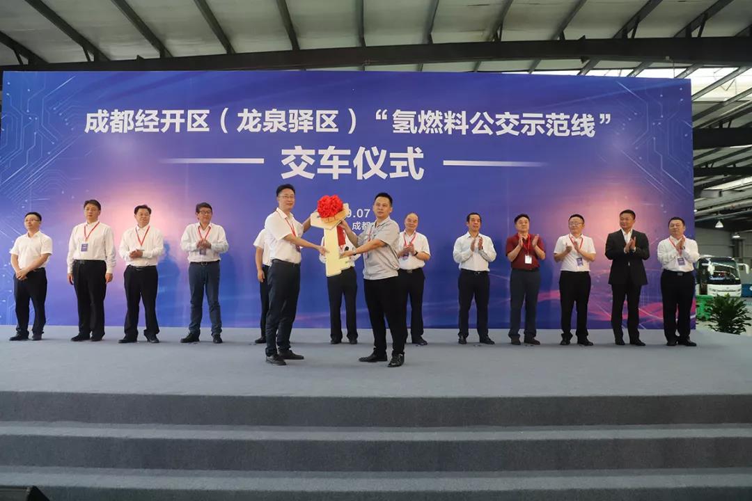 7月29日,20辆蓝白相间搭载亿华通最新一代自主氢燃料电池发动机的氢燃料电池公交车,正式驶上成都市龙泉驿区街头。该批车辆于上午十时在中植一客成都汽车有限公司完成交付,四川省经济和信息化厅二级巡视员周永清,成都经开区管委会主任、龙泉驿区区长杜海波,成都市经信局、投促局、交通运输局、财政局、公交集团、龙泉驿区等相关领导出席并见证交车仪式。 [详细]